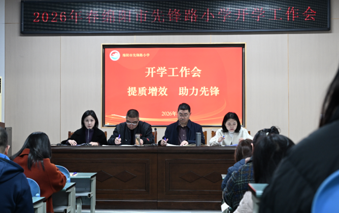 绵阳市先锋路小学负责人表示,此次开学工作会,统一了思想、明确了方向、压实了责任。全体先锋教职工将牢记育人使命,弘扬先锋精神,以更加饱满的热情、更加务实的作风,共同谱写绵阳市先锋路小学教育事业高质量发展新篇章!