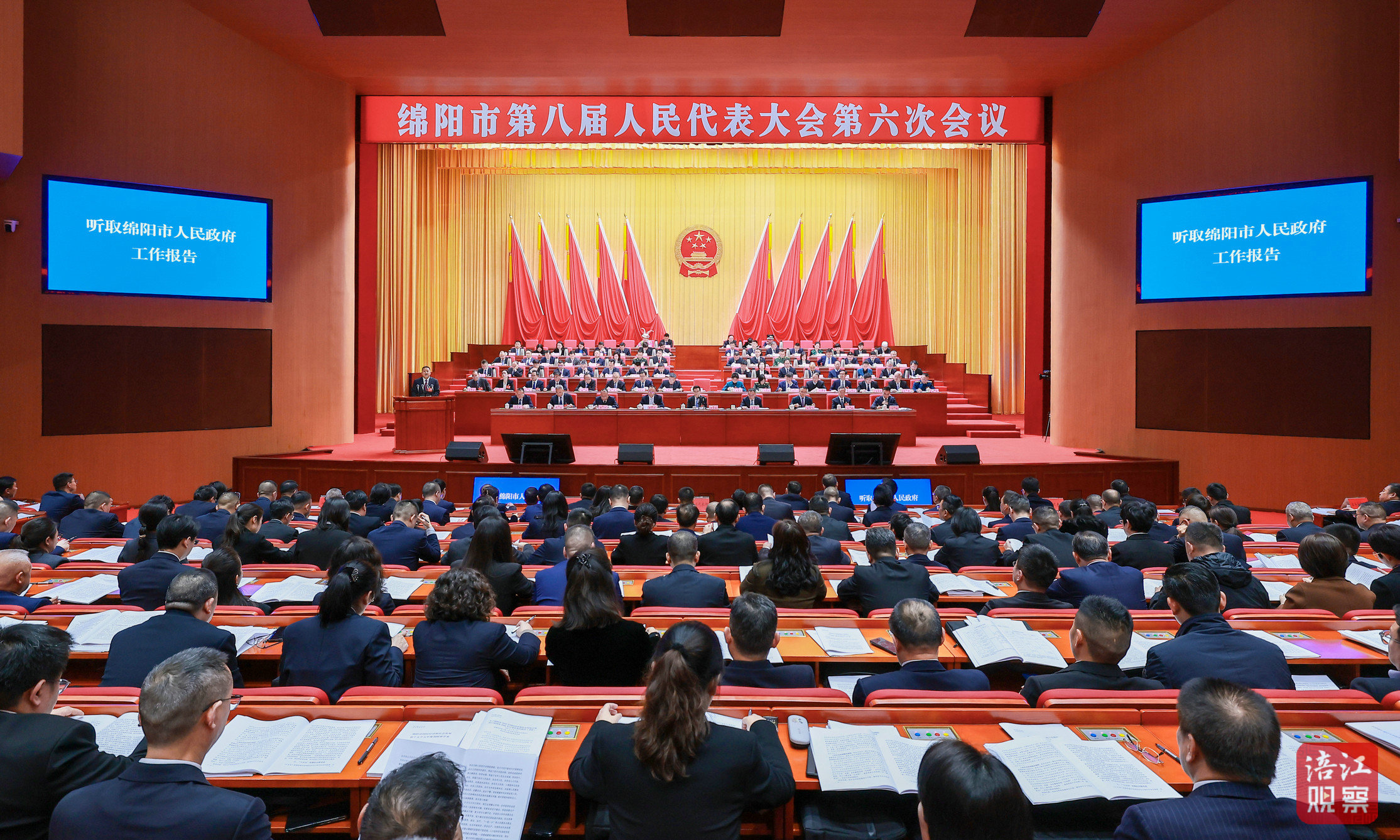 上午9时50分,左永祥宣布:绵阳市第八届人民代表大会第六次会议开幕!全体起立,奏唱中华人民共和国国歌。