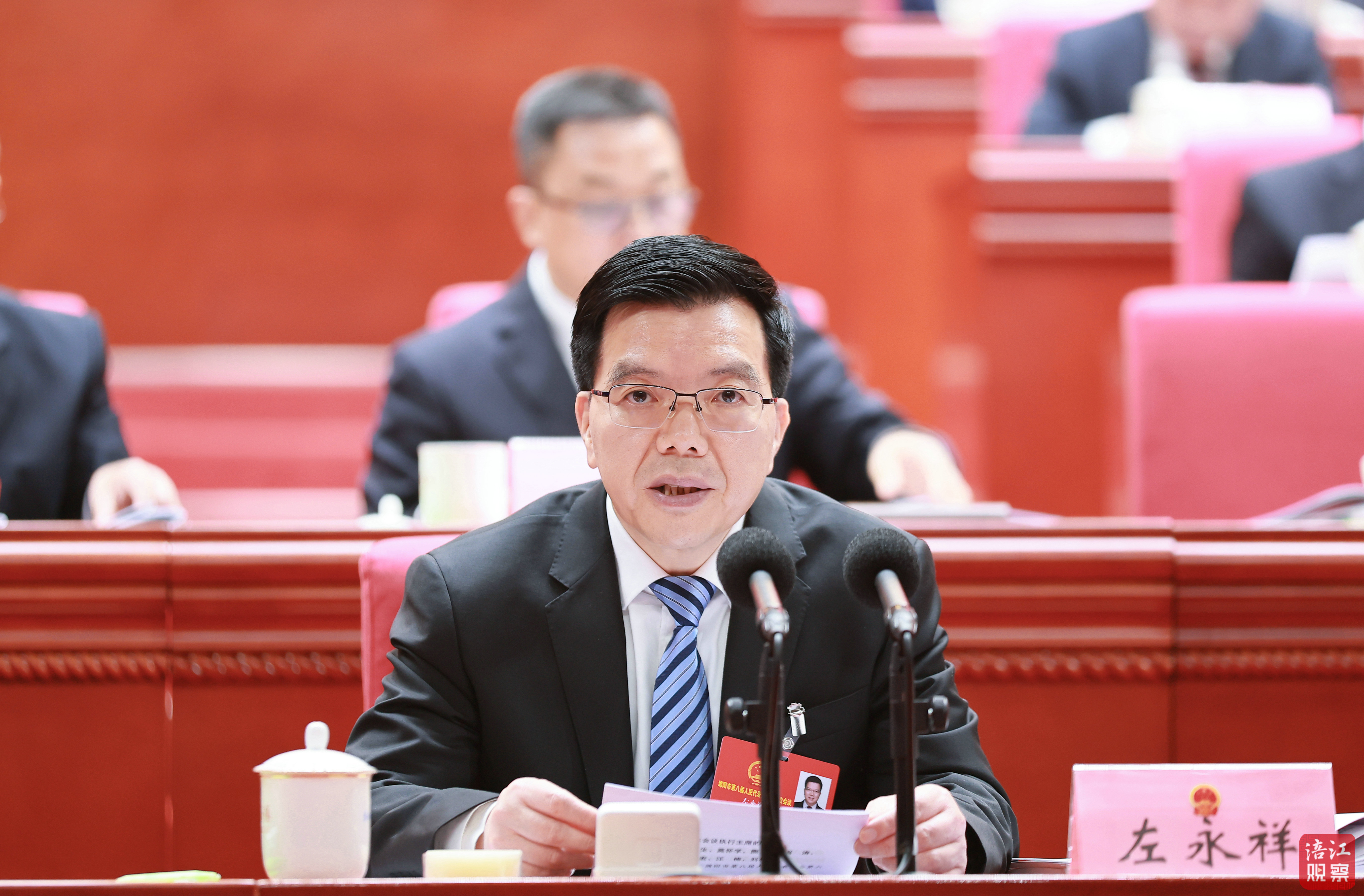 代理市长江彬代表市人民政府作工作报告。市政协主席李亚莲出席大会并在主席台就座。