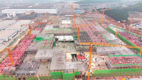 四川绵阳工业园,新型显示产业园基础设施建设项目工地上一片忙碌景象