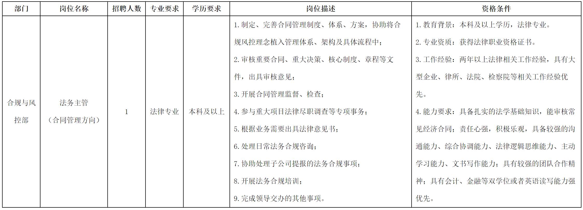 根据公司经营发展需要,现面向社会公开招聘以下岗位。诚邀您的到来。