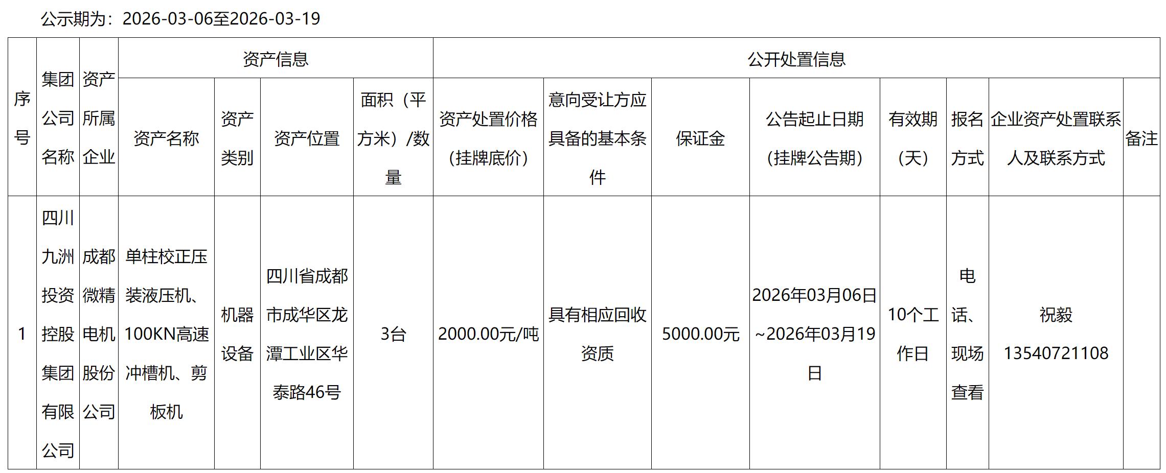 成都微精电机股份公司报废设备处置公告