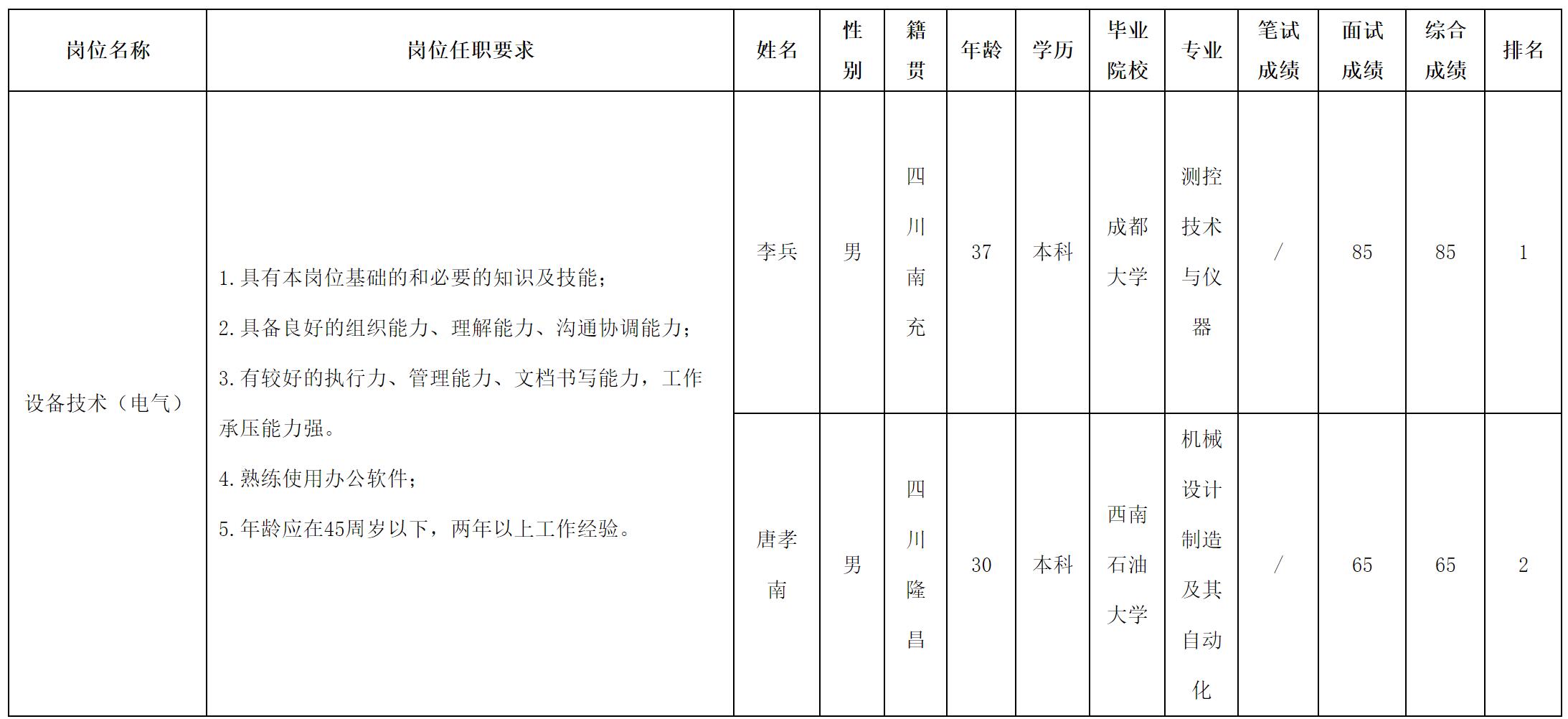 根据四川长虹电源股份有限公司发布的招聘公告及招聘相关规定,经面试等程序,现将面试成绩予以公示。
