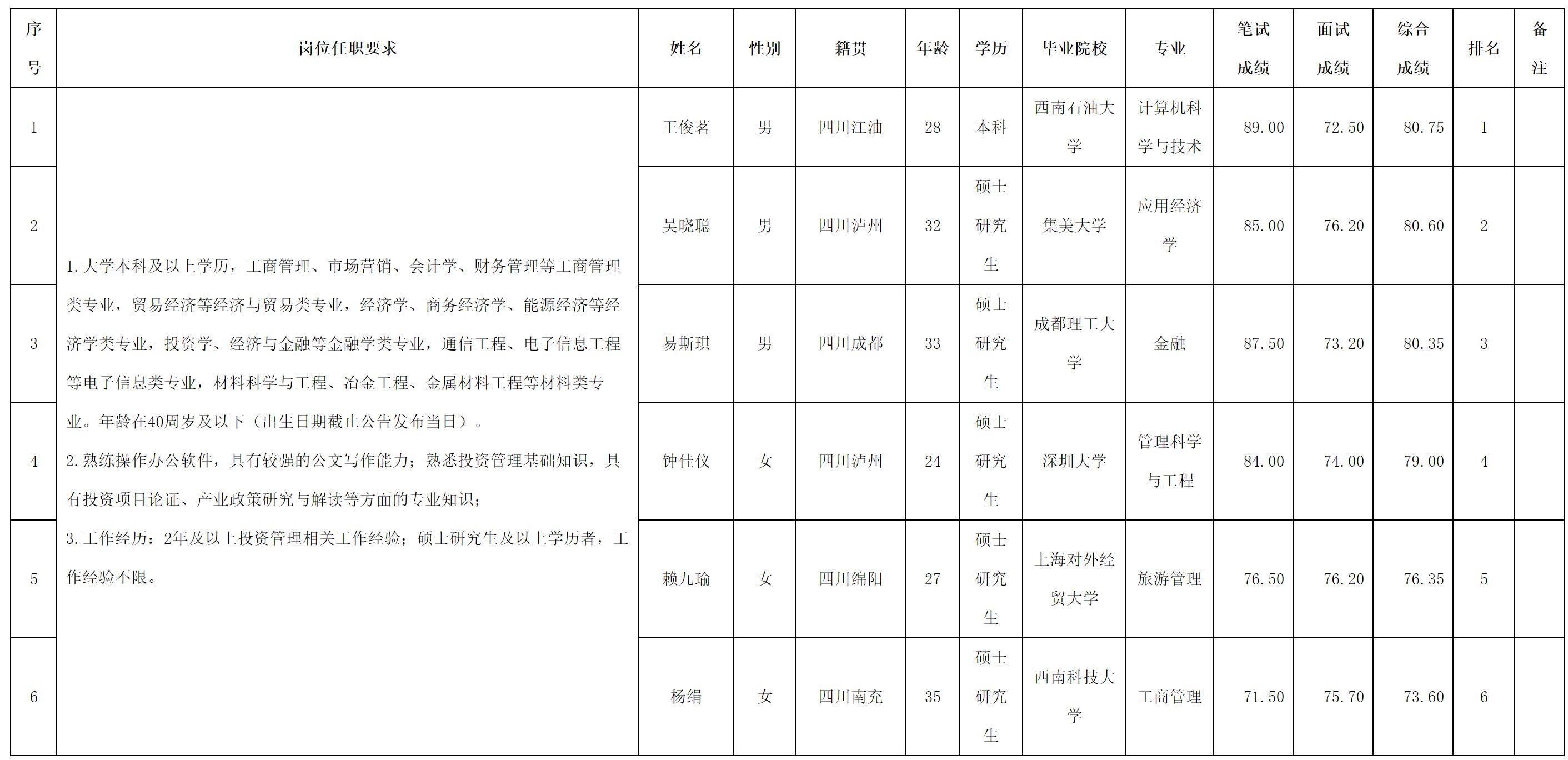 根据绵阳绵太实业有限公司发布的招聘公告及招聘相关规定,经笔试、面试等程序,现将笔试、面试成绩予以公示。