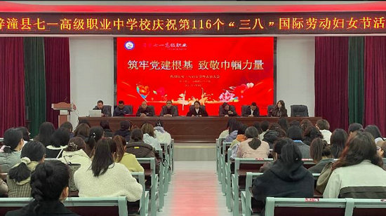 绵阳新闻网讯 为了深入贯彻党建引领精神,弘扬女性教职工无私奉献的优良作风,增强全体女教职工的职业荣誉感与归属感,3月8日下午,梓潼县“七一”高级职业中学校在食堂三楼会议室隆重举行了以“筑牢党建根基 致敬巾帼力量”为主题的2026年“三八”国际妇女节庆祝活动。该校全体女教职工、行政领导班子齐聚一堂,共庆佳节、共话初心、共展芳华,以温馨而有意义的活动,向校园里的每一位巾帼奋斗者致以最诚挚的节日问候与崇高敬意。