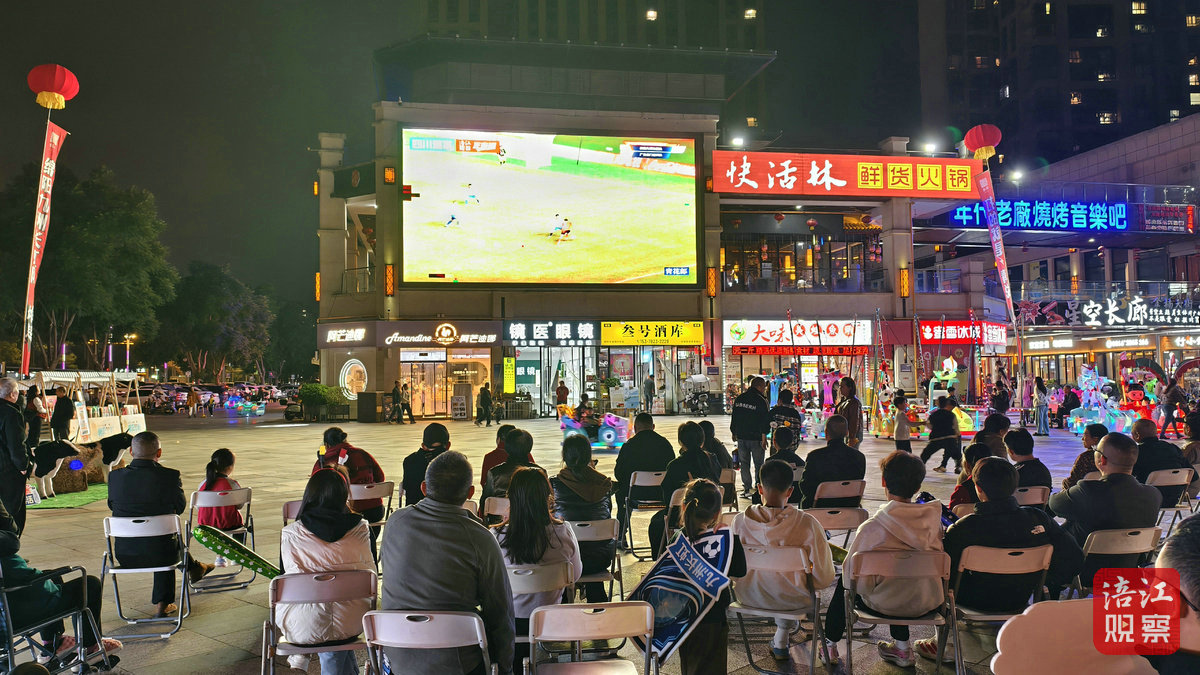 为让更多市民近距离感受川超激情,不错过赛场每一个精彩瞬间,绵阳市商务局联动各县市区(园区)、相关市场主体,精心打造“12+N”沉浸式第二观赛点,覆盖城市商圈、潮玩街区、美食夜市与湖畔郊野,以高清大屏直播为核心,融合美食市集、互动打卡、专属福利等多元体验,让市民在家门口就能沉浸式享受川超魅力,感受绵阳的足球热情与人间烟火。