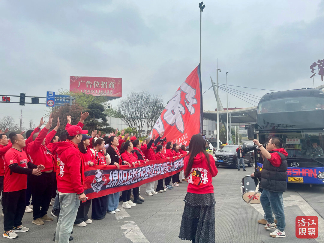 “欢迎乐山,乐山雄起!”随着大巴车缓缓驶出收费站,球迷们齐声高呼着欢迎口号,向缓缓停下的车辆挥舞着手中的旗帜,还向客队送上了精心准备的鲜花,用最纯粹、最直接的方式,传递着“友谊第一,比赛第二”的体育精神和绵阳这座城市的好客之道。