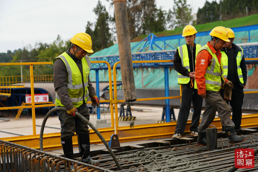 首榀梁的成功浇筑,标志着三台制梁场从建场正式转入试生产阶段。据悉,待到箱梁检验合格正式投产后,首榀箱梁将用于架设绵遂资内铁路3标段橙园村大桥。