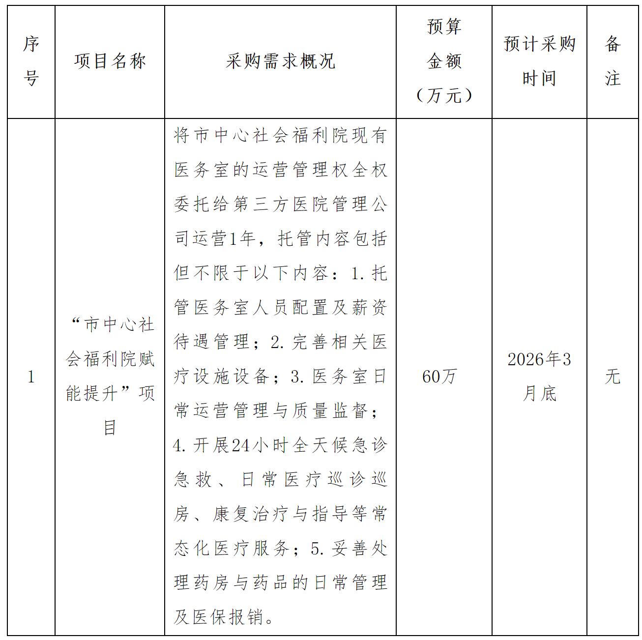 为便于供应商及时了解政府采购信息,根据《财政部关于开展政府采购意向公开工作的通知》(财库〔2020〕10号)等有关规定,现将绵阳市民政局2026年度政府采购意向公告(第4批)采购意向公开如下: