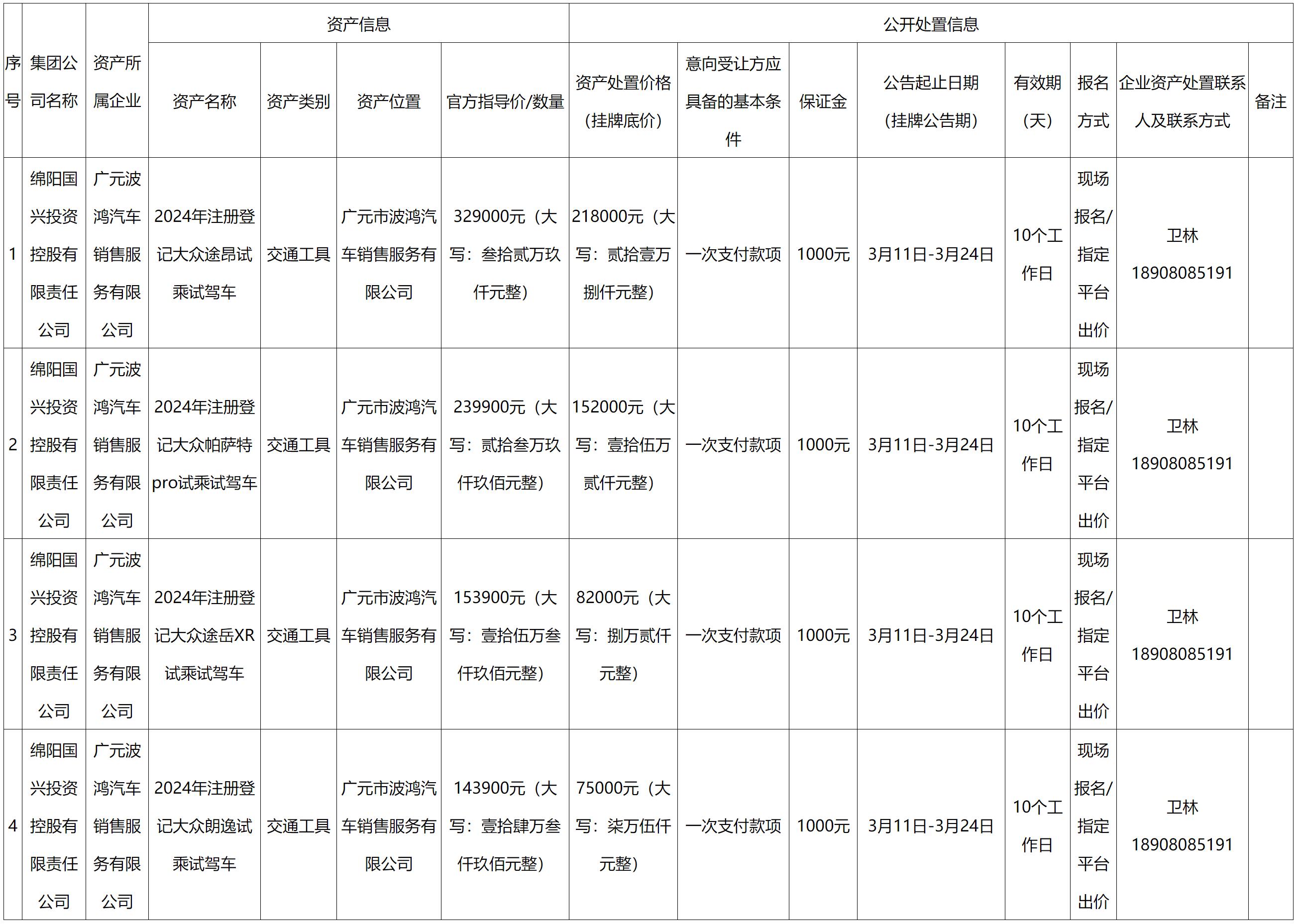 绵阳国兴投资控股有限责任公司资产公开处置信息公示
