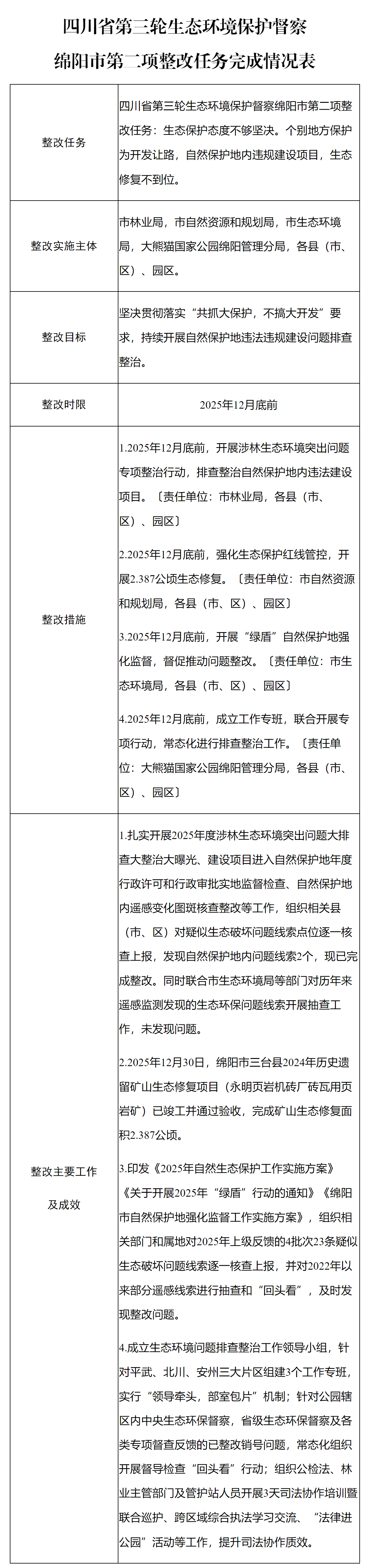 附件:四川省第三轮生态环境保护督察绵阳市第二项整改任务完成情况表
