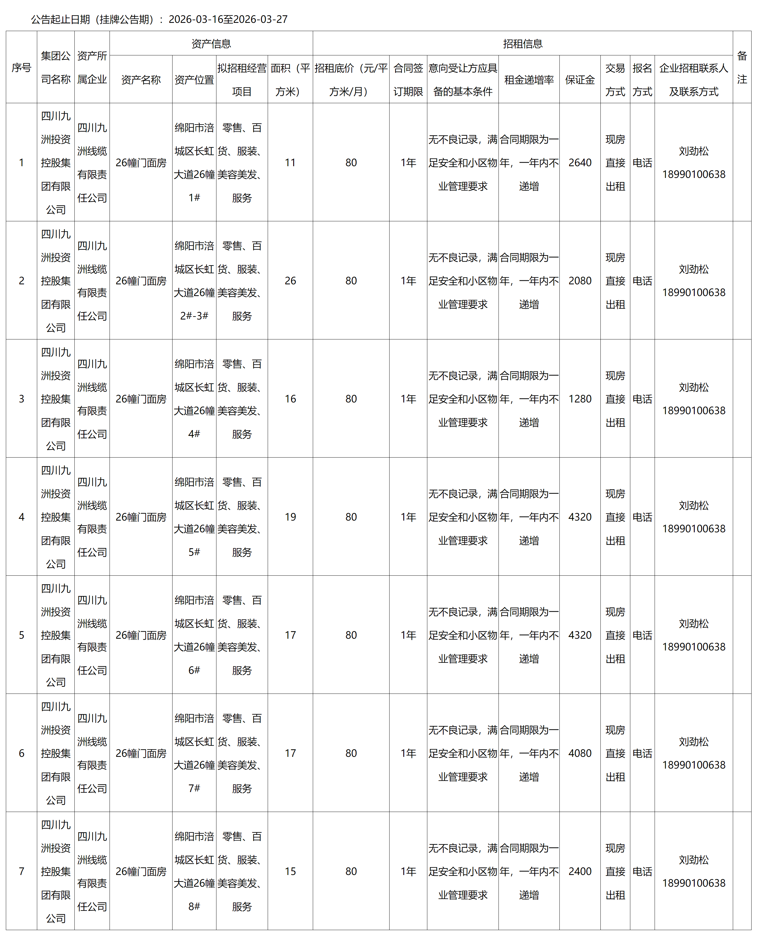 四川九洲线缆有限责任公司资产出租公告