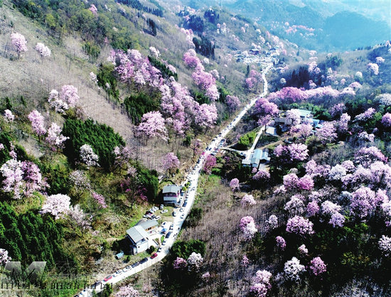 眼下,江油戴天山辛夷花进入盛花期,漫山遍野的辛夷花蔚为壮观。 记者 陈元松 摄
