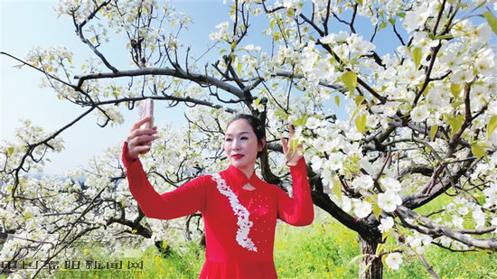 3月11日,涪城区新皂镇第八届梨花节在邱家庙村驿路梨花园梨园广场拉开帷幕,游客踏春而来,沉浸式感受乡村文旅的独特魅力。 记者 尹秦 摄