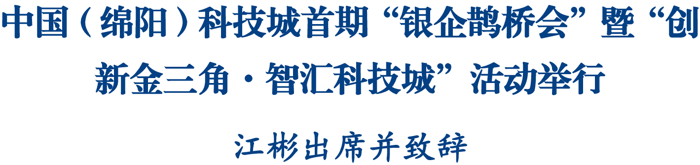 绵阳新闻网讯 3月19日,中国(绵阳)科技城首期“银企鹊桥会”暨“创新金三角·智汇科技城”活动举行。市委副书记、市长、科技城党工委书记江彬出席活动并致辞。
