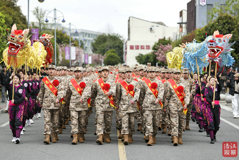 14时30分,在激情澎湃的舞龙、舞狮表演后,欢送仪式在四川文化艺术学院梓潼校区拉开帷幕,四川文化艺术学院梓潼校区的1000余名学生代表到场为新兵们送行。