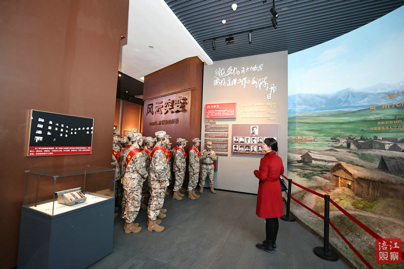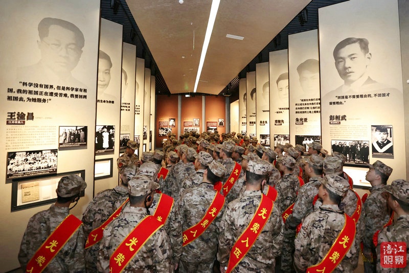 上午9时30分,胸戴红花、身着戎装的入伍新兵们怀着崇敬的心情,分批次走进“两弹城”,开启了“寻根铸魂”的现地参观之旅。在讲解员的带领下,新兵们依次参观了两弹城博物馆和原中国工程物理研究院院部旧址。泛黄的照片、陈旧的实验设备、充满岁月痕迹的工作笔记,无声地诉说着那段波澜壮阔的历史。