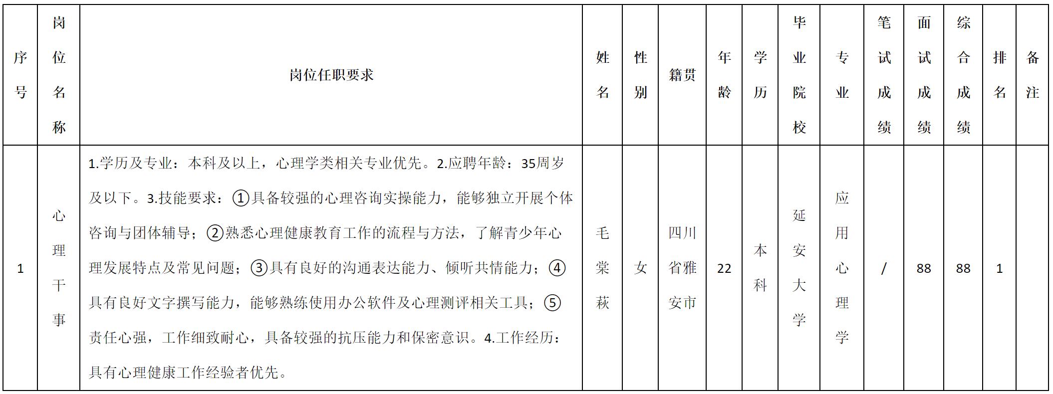 根据四川九洲教育投资管理有限公司发布的招聘公告及招聘相关规定,现将测试成绩予以公示。