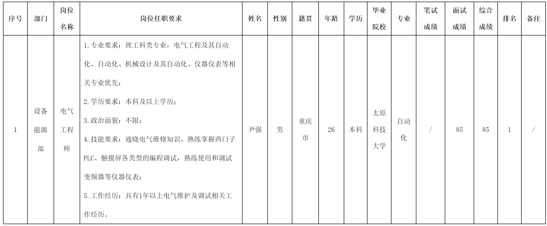 根据四川波鸿实业有限公司发布的招聘公告及招聘相关规定,经面试等程序,现将面试成绩予以公示。