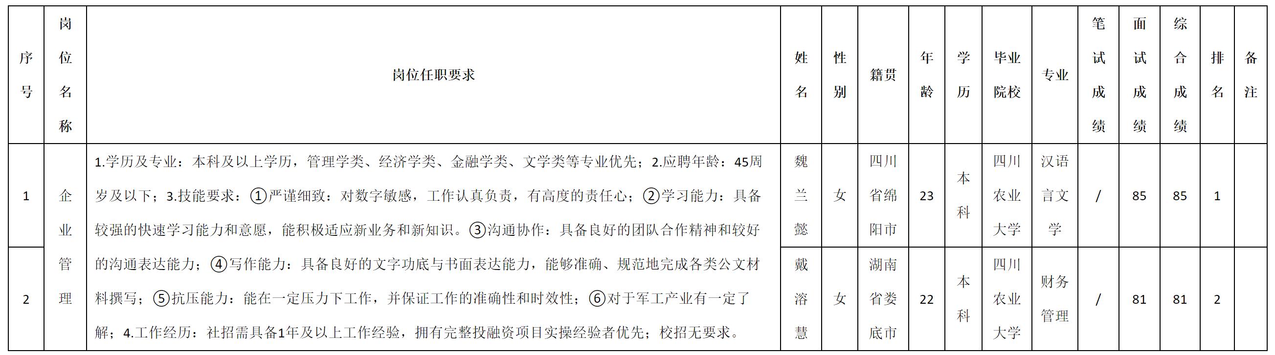 四川九洲电器集团有限责任公司关于招聘企业管理测试成绩的公示