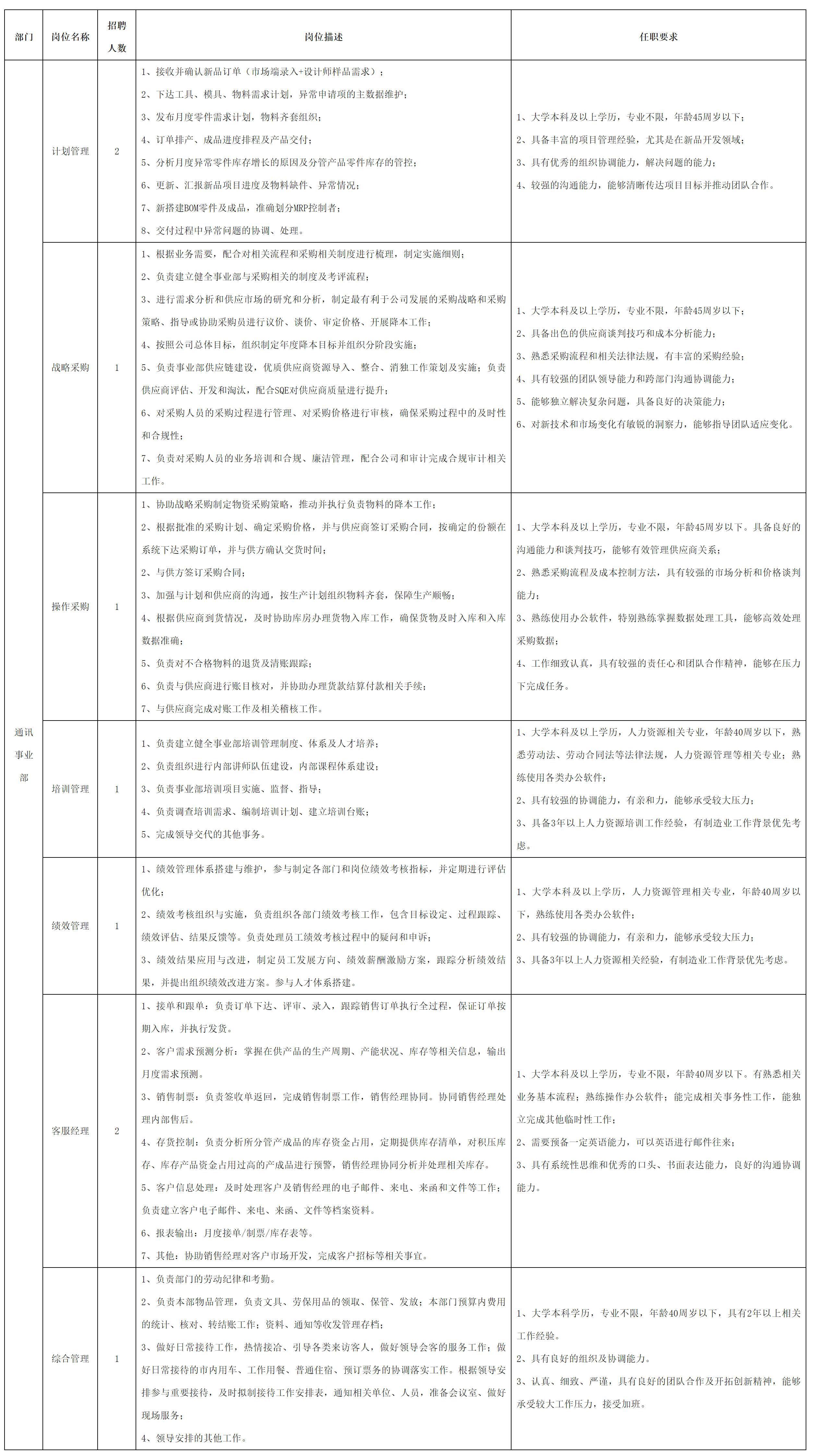 现因公司经营发展需要,现面向长虹集团内部、外部诚聘计划管理等岗位人员,具体岗位招聘信息公告如下:
