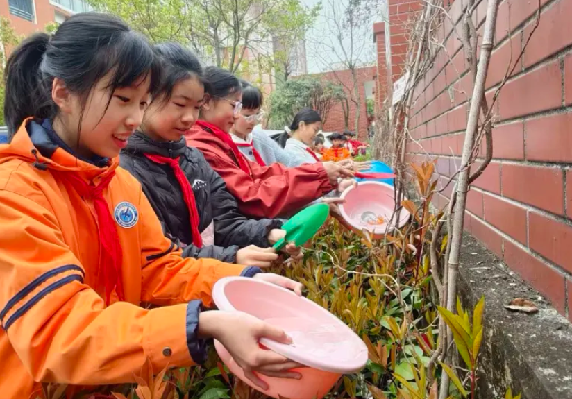 本次护绿行动中,该校统筹各年级教学安排,组织学生走进校园绿植区域,亲手参与绿植栽种、校园环境打理等劳动实践。孩子们以指尖劳作浇灌新绿,在躬身体验中感受劳动的价值与自然的美好,既为校园增添了盎然春意,更在协作互助中锤炼了团队意识与责任担当。