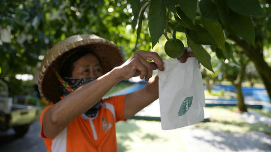 3月19日,琼海世界热带水果之窗的工人正在果园里工作。新华社记者许雨深 摄