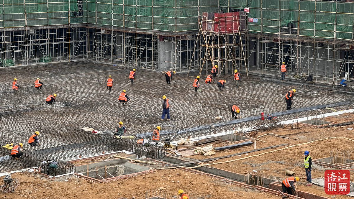 施工现场,9栋高层住宅已拔地而起,塔吊、吊车、天泵等10余台大型设备正开足马力运转。高峰期时,近500名工人同时作业,钢筋工、木工、架子工分工明确,绑扎钢筋、搭建模板、浇筑混凝土……每一道工序都紧密衔接。