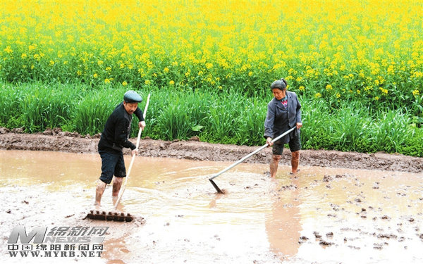 平整秧田。