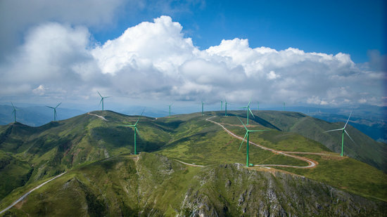 攀西地区清洁能源资源丰富,图为海拔3100米的凉山州布拖县特木里镇风电场。(陈世煜 摄)