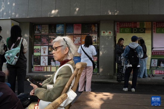 3月28日,观众在成都市玉林社区巷口浏览戏剧节剧目表。