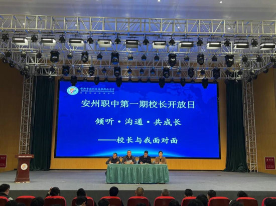 绵阳新闻网讯 为了深入贯彻以师生为本的理念,畅通校生沟通渠道,切实回应学生在学习、生活、成长与职业规划中的关切,3 月 25 日下午,安州区高级职业中学成功举办 了以“倾听?沟通?共成长 —— 校长与我面对面”为主题的?校长开放日活动。该校校级领导及各处室负责人与学生代表齐聚学术厅,面对面交流,共话校园发展,共解成长难题。