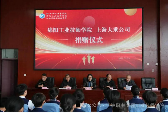 绵阳新闻网讯 2026年 3 月 23 日上午,江油市职业中学校与上海大乘公司在学校学术厅隆重举行了以“校企协同育英才 爱心赋能筑蓝天”为主题的航空专业设备捐赠仪式。