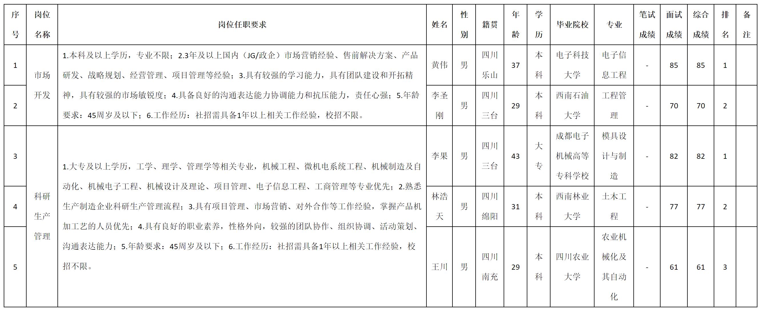 根据四川长九光电科技有限责任公司发布的招聘公告及招聘相关规定,现将测试成绩予以公示。