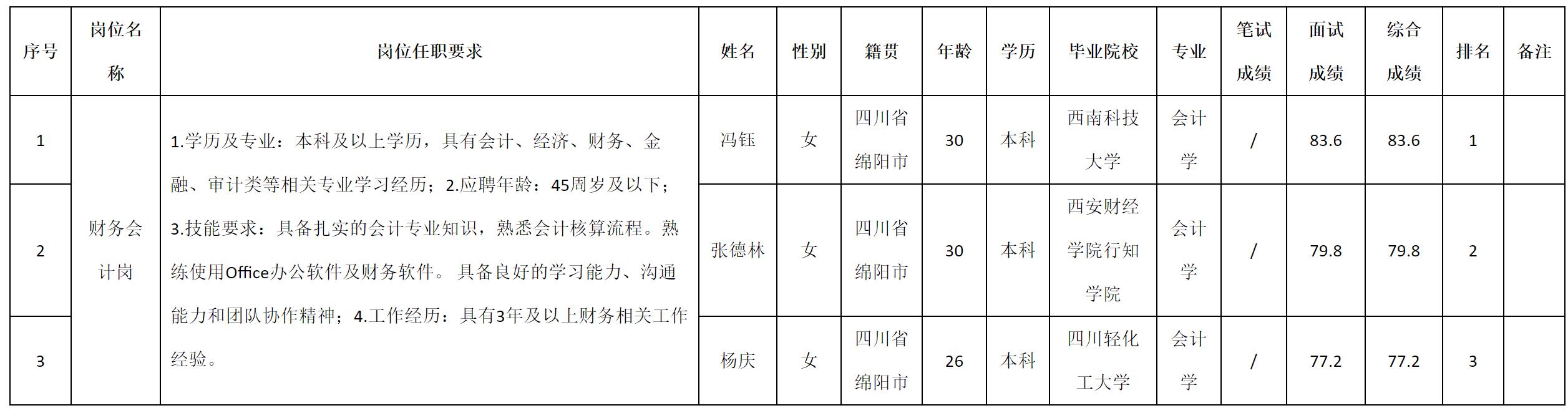 根据四川九华光子通信技术有限公司发布的招聘公告及招聘相关规定,现将测试成绩予以公示。