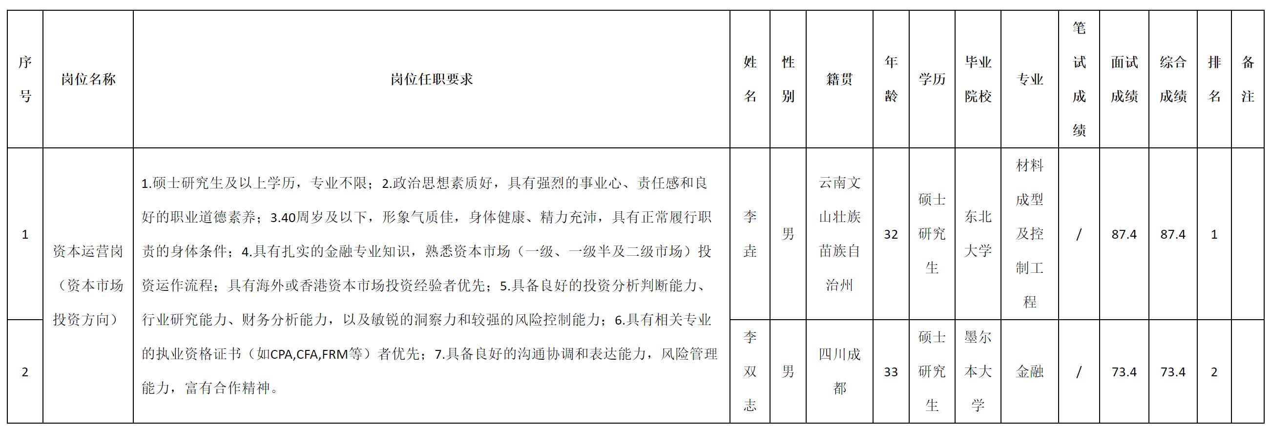 根据四川九洲创业投资有限责任公司发布的招聘公告及招聘相关规定,现将测试成绩予以公示。