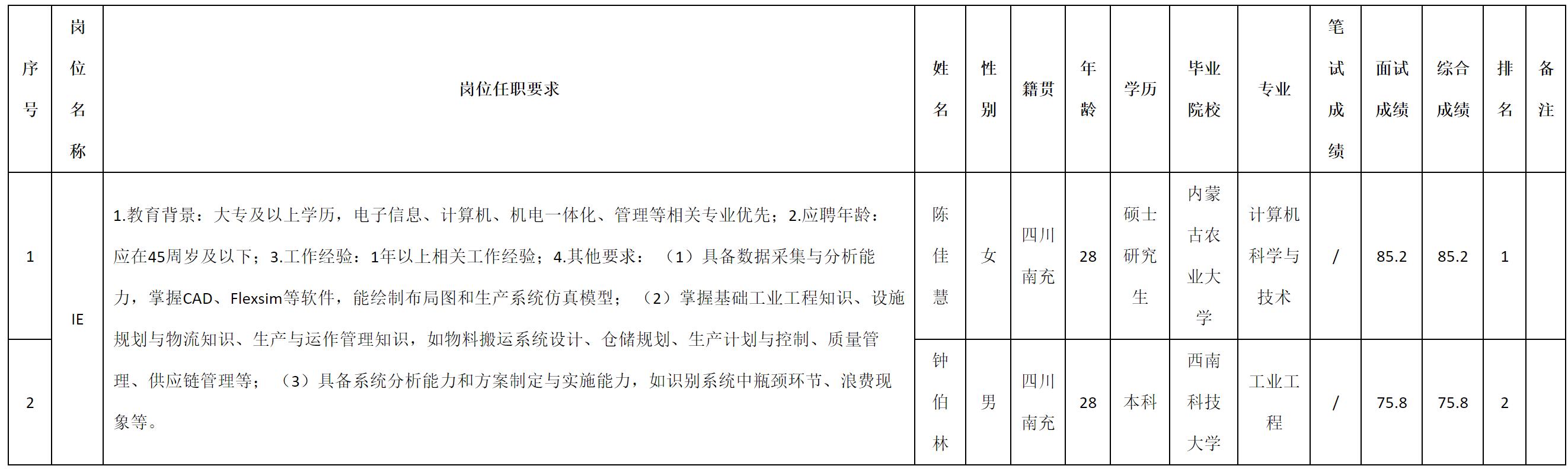 根据四川九州电子科技股份有限公司发布的招聘公告及招聘相关规定,现将测试成绩予以公示。