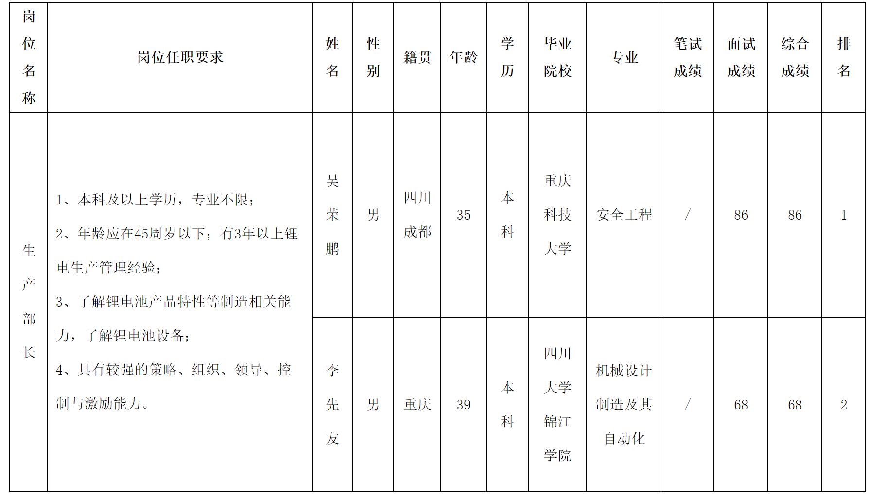 根据虹源科技公司发布的招聘公告及招聘相关规定,经面试等程序,现将测试成绩予以公示。