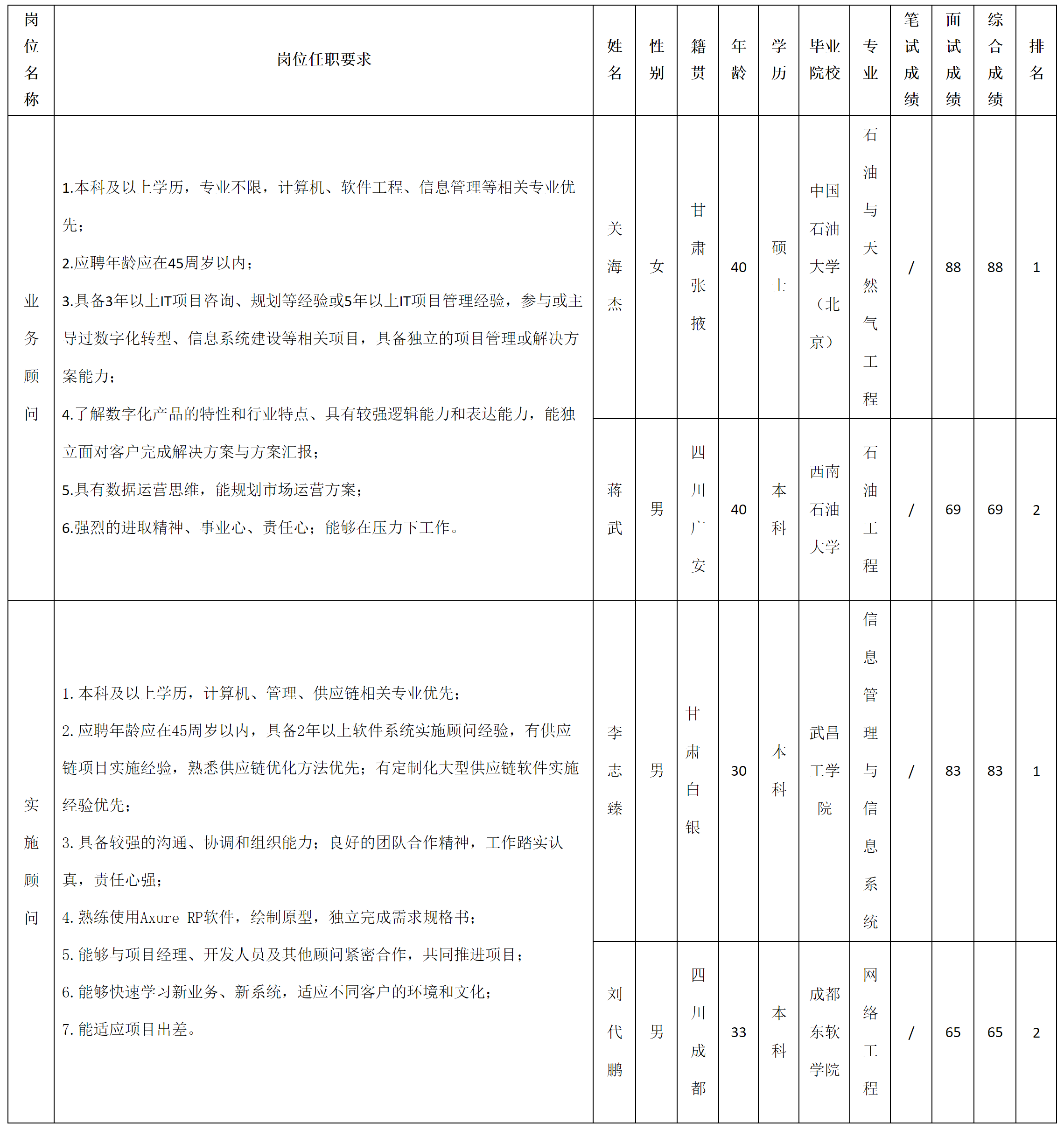 根据四川虹信软件股份有限公司发布的招聘公告及招聘相关规定,经面试等程序,现将测试成绩予以公示。