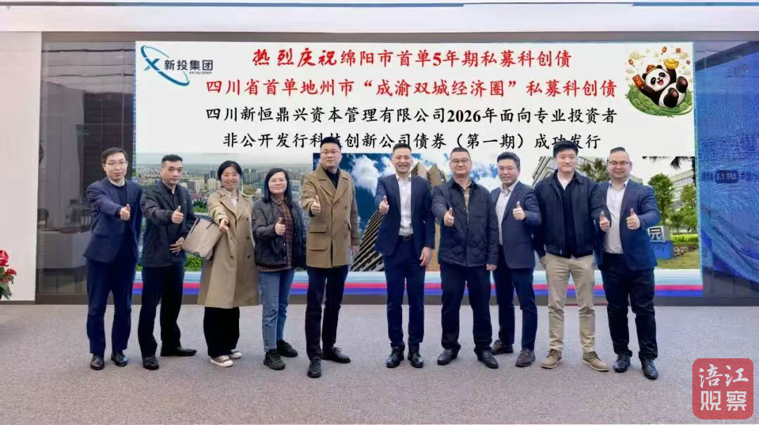 4月1日,记者从绵阳科技城新区了解到,日前,该区国有平台新投集团所属子公司——四川新恒鼎兴资本管理有限公司2026年面向专业投资者非公开发行科技创新公司债券(成渝双城经济圈)(第一期),在上海证券交易所成功发行。本期债券发行金额3亿元,期限为纯5年,加权票面利率2.45%。