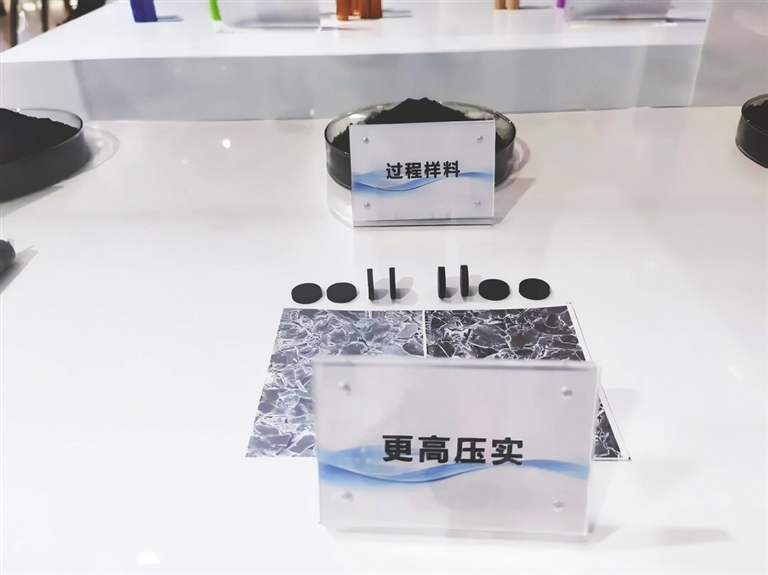 硅碳负极制备过程样品,石墨为基底密实的结构提供更大的耐压强度。记者 尹秦 摄