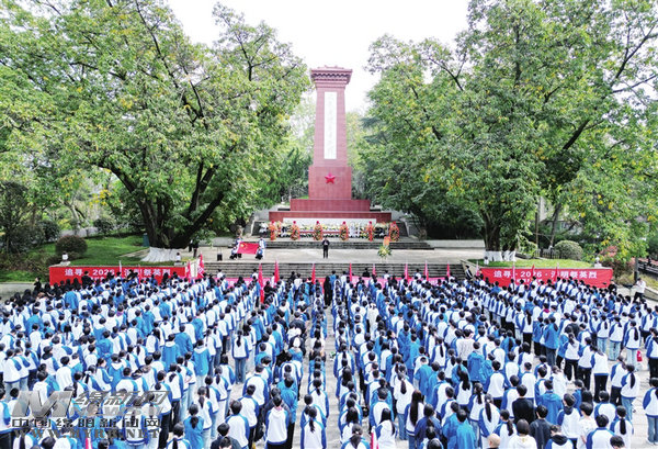 3月31日,平武县七一龙安中学师生徒步近十公里,来到平武县烈士陵园,祭扫献花、缅怀先烈。