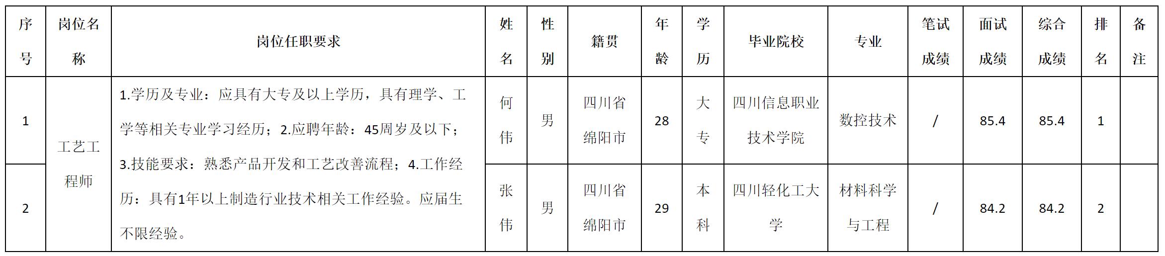 根据四川九州光电子技术有限公司发布的招聘公告及招聘相关规定,现将测试成绩予以公示。