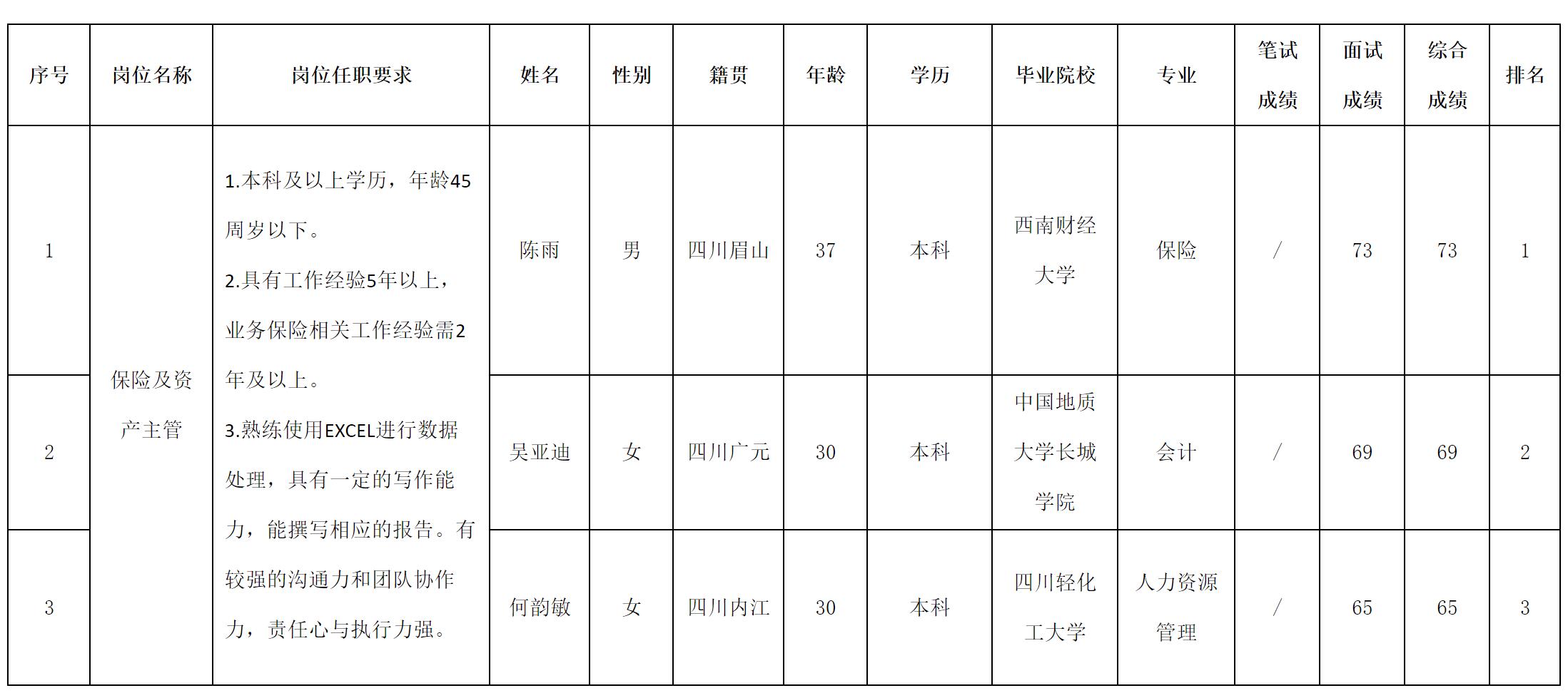 根据四川长虹民生物流股份有限公司发布的招聘公告及招聘相关规定,经面试等程序,现将测试成绩予以公示。