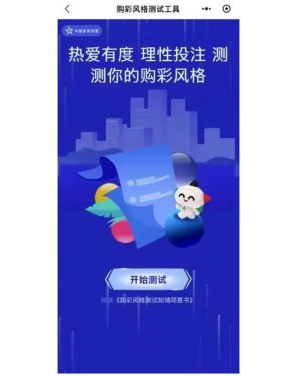 场景二:购彩风格测试。想知道自己是什么购彩风格?“理智型”?还是“易冲动”?扫码测测,专属你的小建议。快速了解自己的购彩风格。它能帮助你很快了解自身购彩习惯,更好地规划购彩节奏。