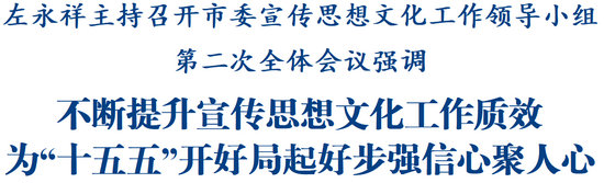 绵阳新闻网讯 4月7日,八届市委宣传思想文化工作领导小组第二次全体会议召开,省委常委、市委书记、领导小组组长左永祥主持会议并讲话。他强调,要深入学习贯彻习近平文化思想,认真落实全国、全省宣传部长会议精神,更好担负起新的文化使命,不断提升宣传思想文化工作质效,为“十五五”开好局起好步强信心、聚人心。