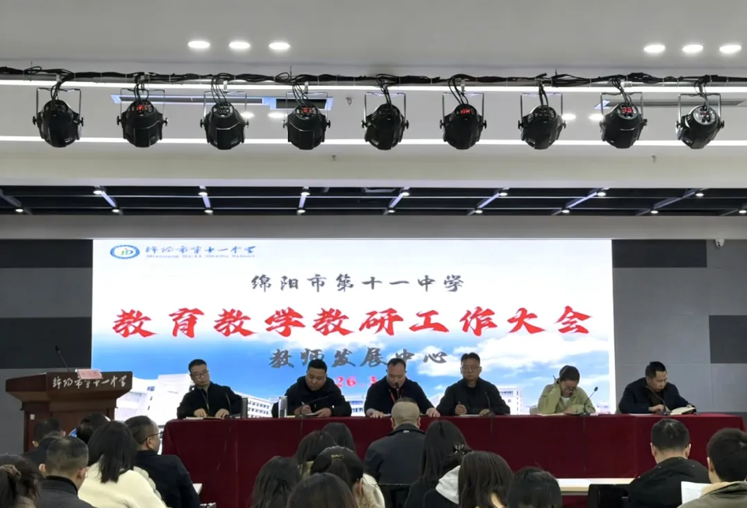 近日,绵阳市第十一中学全体教师齐聚一堂,召开了以“碰真逗硬抓常规 真抓实干促提升”为主题的教育教学教研工作大会。本次大会依据经开区教育工作大会的要求,紧扣教学核心、聚焦教研实效,直面问题、靶向施策,对学校教育教学教研工作进行全面部署、系统安排,以实打实的举措推动各项工作落地落细,全力推进学校教育教学教研工作向纵深发展,为构建幸福教育生态、提升教育教学质量筑牢根基。