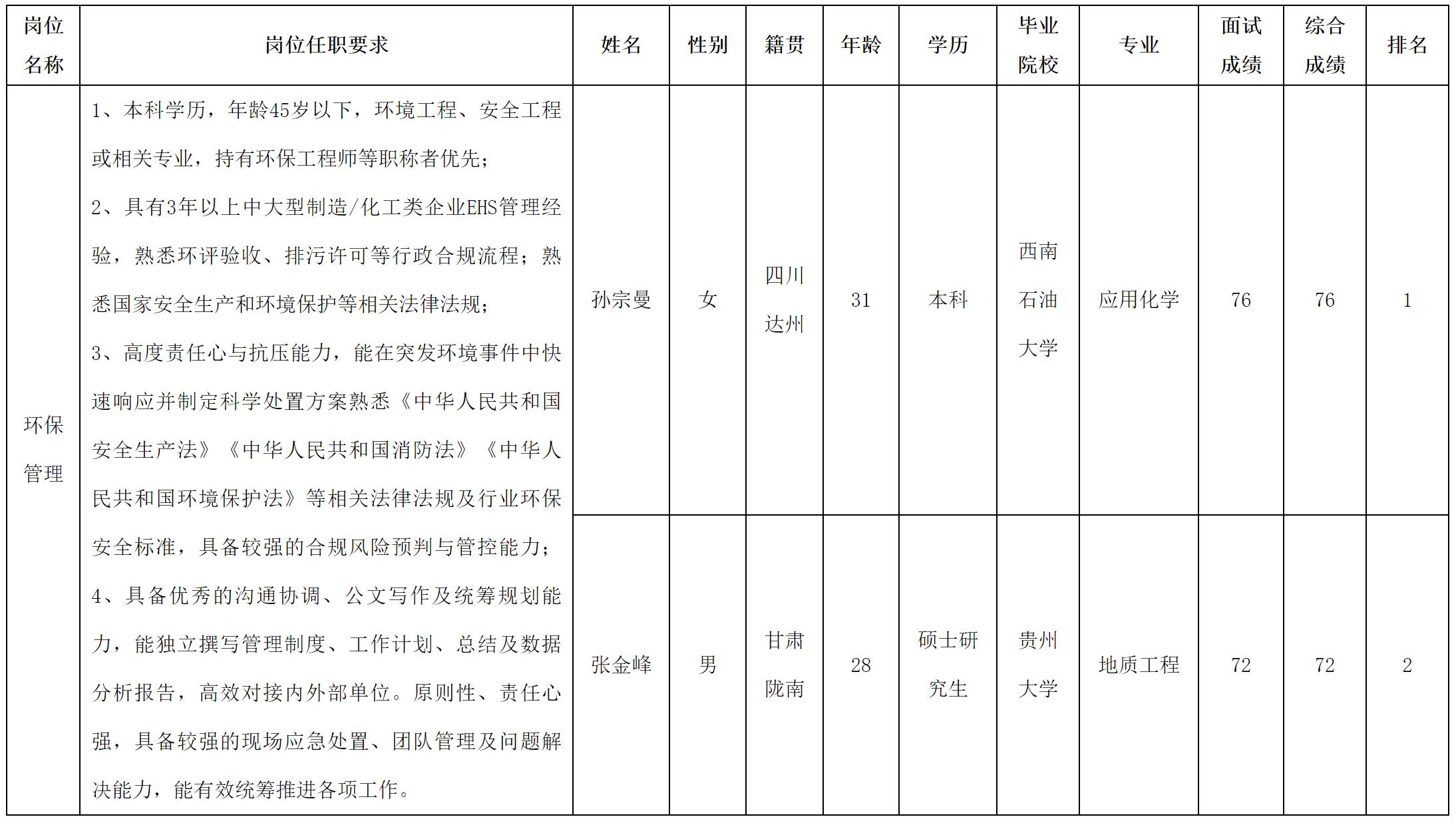 根据四川华丰科技股份有限公司发布的招聘公告及招聘相关规定,经面试等程序,现将测试成绩予以公示。