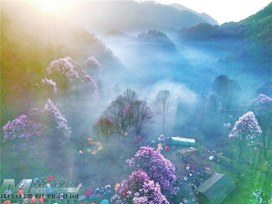 在大屋基,记者遇见了正忙着拍摄辛夷花海的曹先生。今年整个清明假期,他带领伙伴们驻扎在山上,通过无人机航拍,将藏王寨的美景发布在社交平台上,“希望让这藏在深闺的辛夷花走出去,为我们江油文旅融合发展增光添彩!” (曹庆勇 刘彩萍 刘冬梅 记者 陈元松)