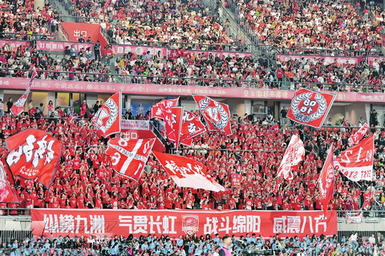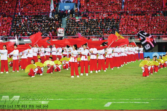 绵阳球迷现场加油助威。记者 刘晓东 摄